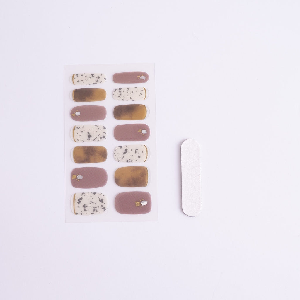 14枚のネイルシールに加え、仕上げに便利なミニファイルがセットに。貼ったシールの先端を整えたり、サイズを微調整したりする際に役立ちます。はじめてネイルシールを使う方でも取り入れやすく、セルフネイルの幅が広がるセット内容です。