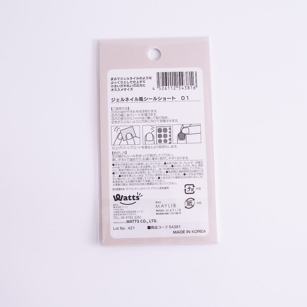シールは全体的に小さめサイズで、爪が短い方や丸みのある爪の方にも合わせやすい仕様。自分の爪の形に近いものを選んで貼るだけなので、無理なくフィットし、自然な仕上がりが楽しめます。