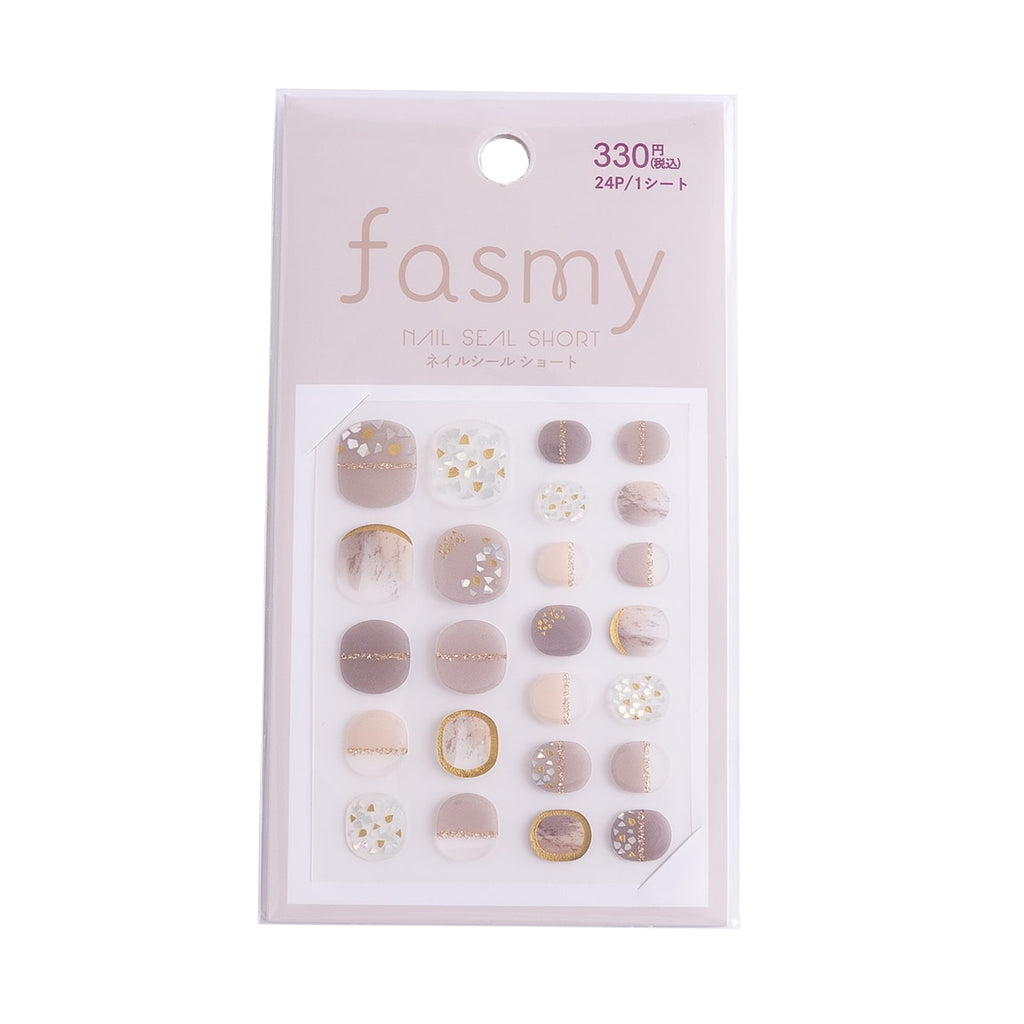 fasmyのショートネイルシリーズは、今回の07番以外にもさまざまなデザインを展開。やグラデーション系(品番:054383)、ラメ入りデザイン(品番:054400)などが揃っており、シーンや気分に合わせて選べます。複数デザインを持っておくと、コーディネートの幅が広がります。