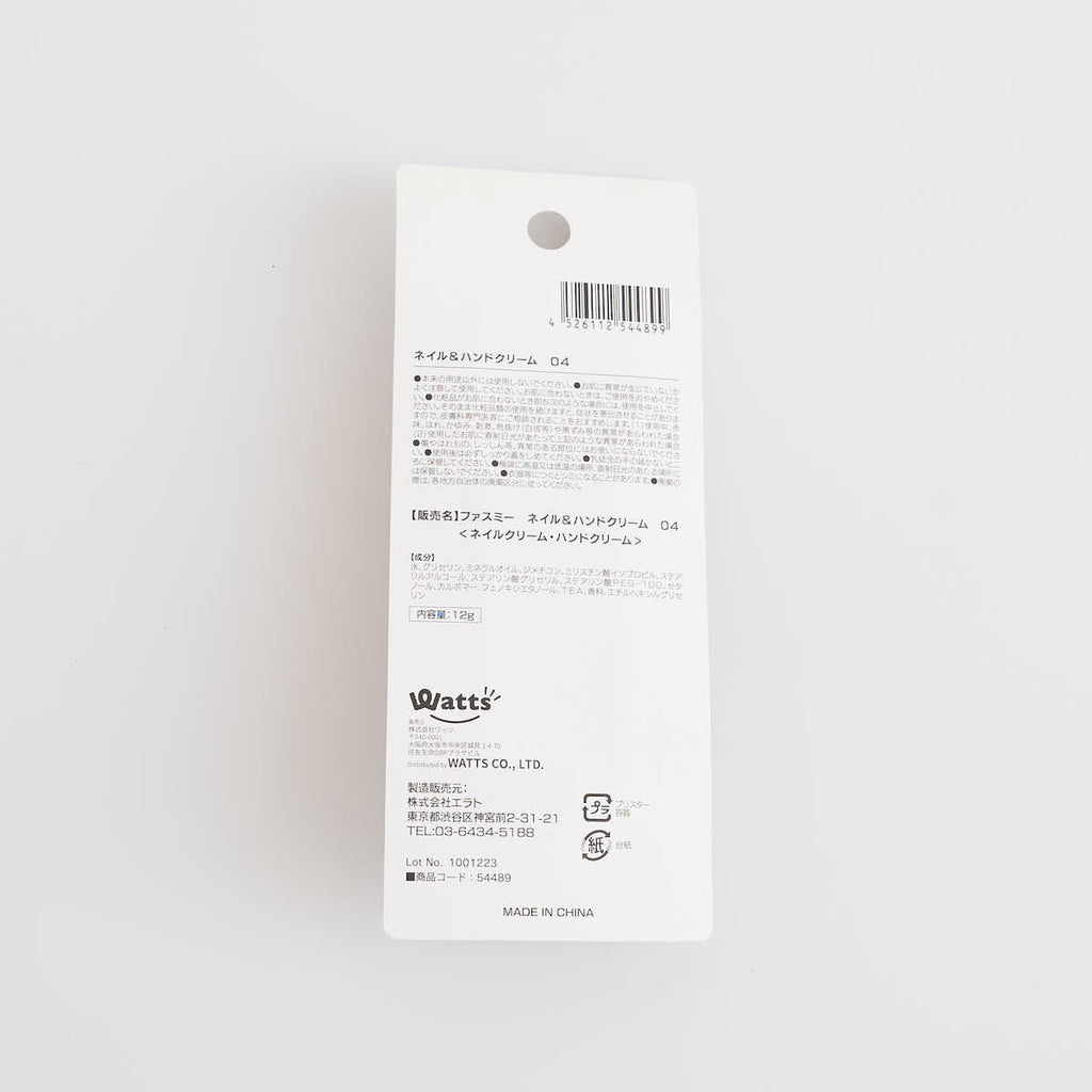 こちらのアイテムは、ワッツのオリジナルコスメシリーズ、fasmy(ファスミー)の手とネイルを同時にケアできるクリームです。しっとりタイプ。ベイビーの香りがやさしく香ります。