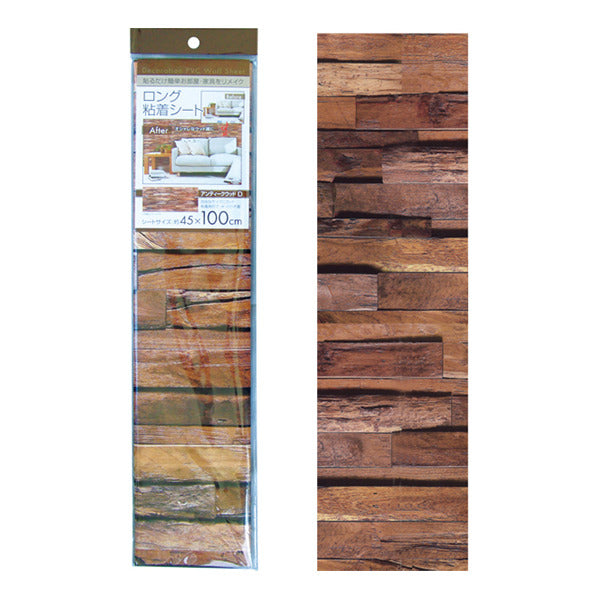 こちらのアイテムは、水・のり不要で貼るだけでお部屋をイメージチェンジできるアンティークウッド調の粘着シートです。