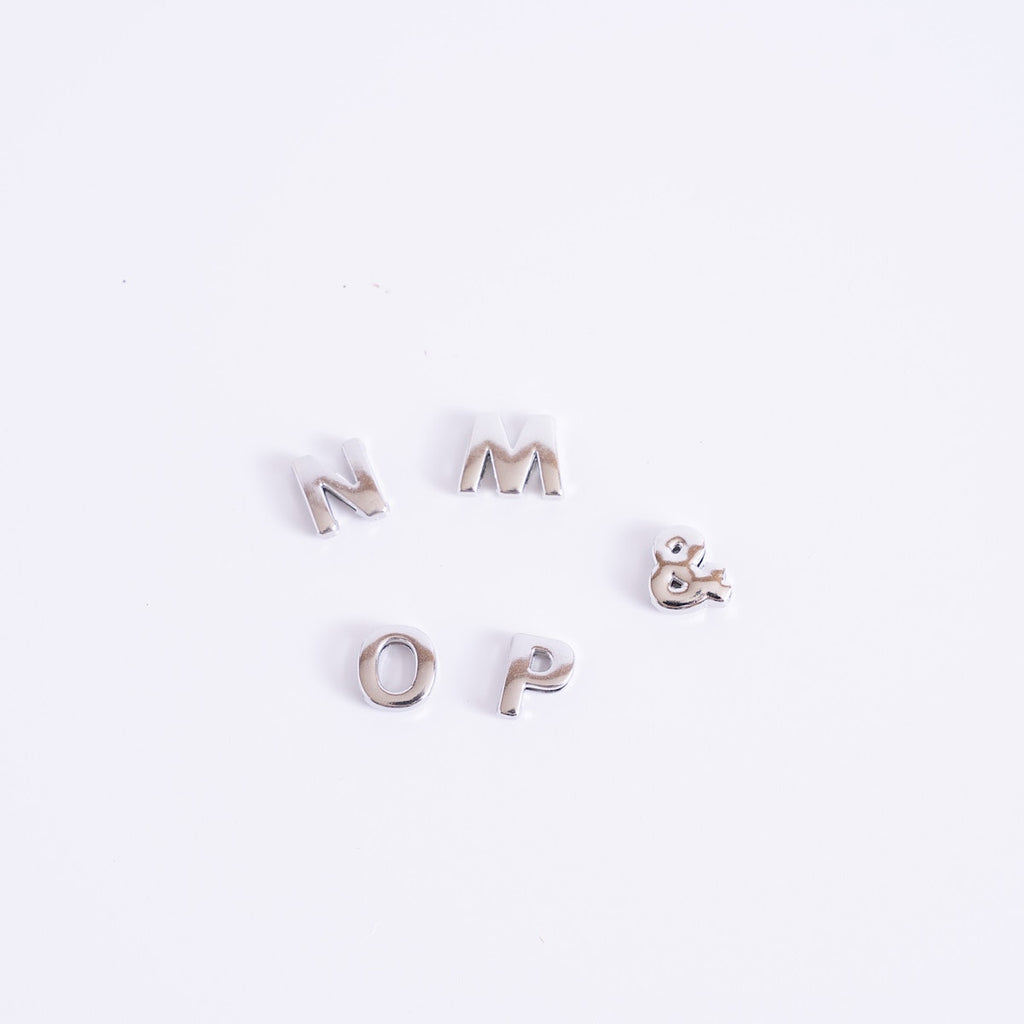 M・N・O・Pと「&」マークが入った5個セットのネームプレートパーツです。名前の一部や推しのコンビ名・グループ名などを表現するカスタムに活用できます。モチーフのバリエーションを広げたい方にもおすすめの内容です。