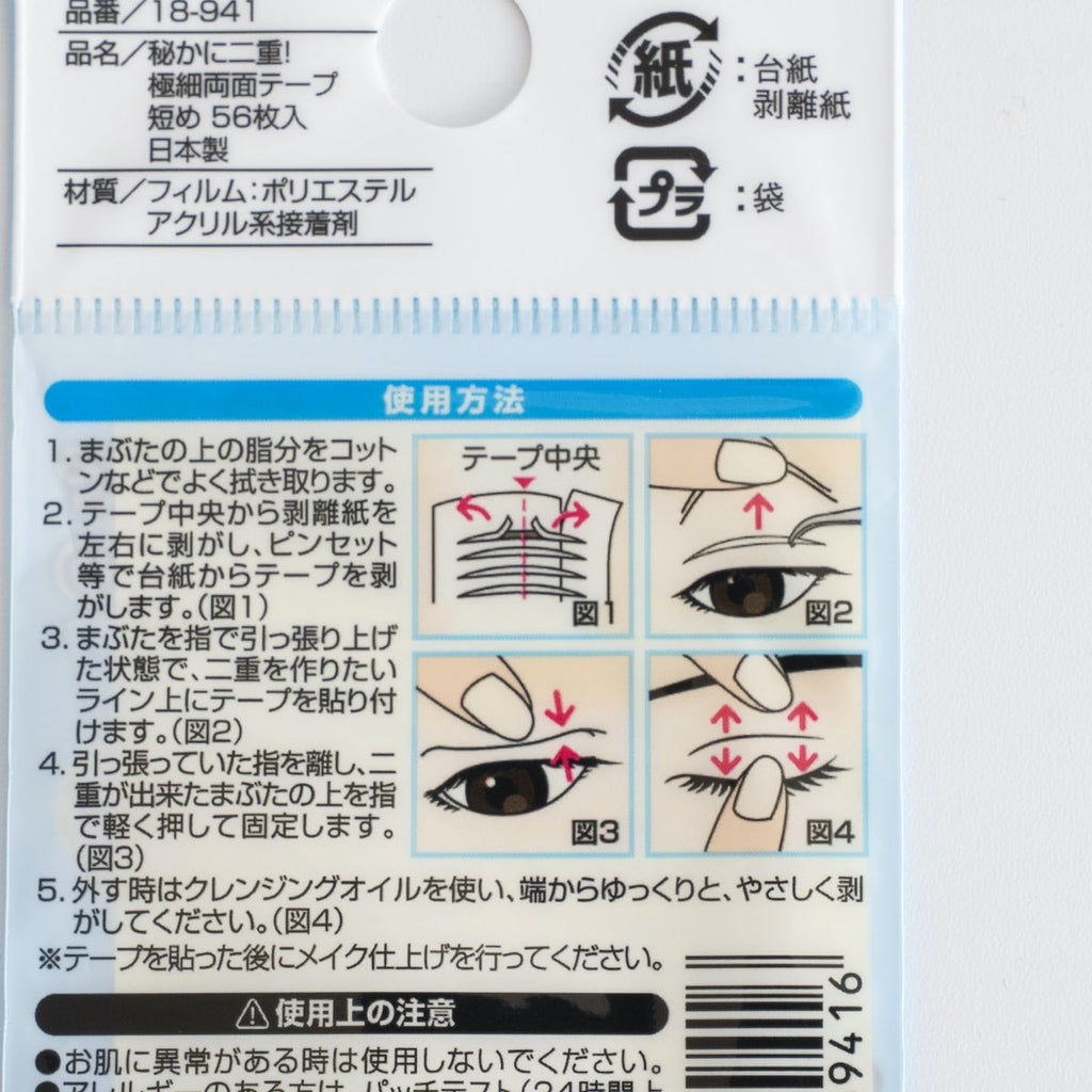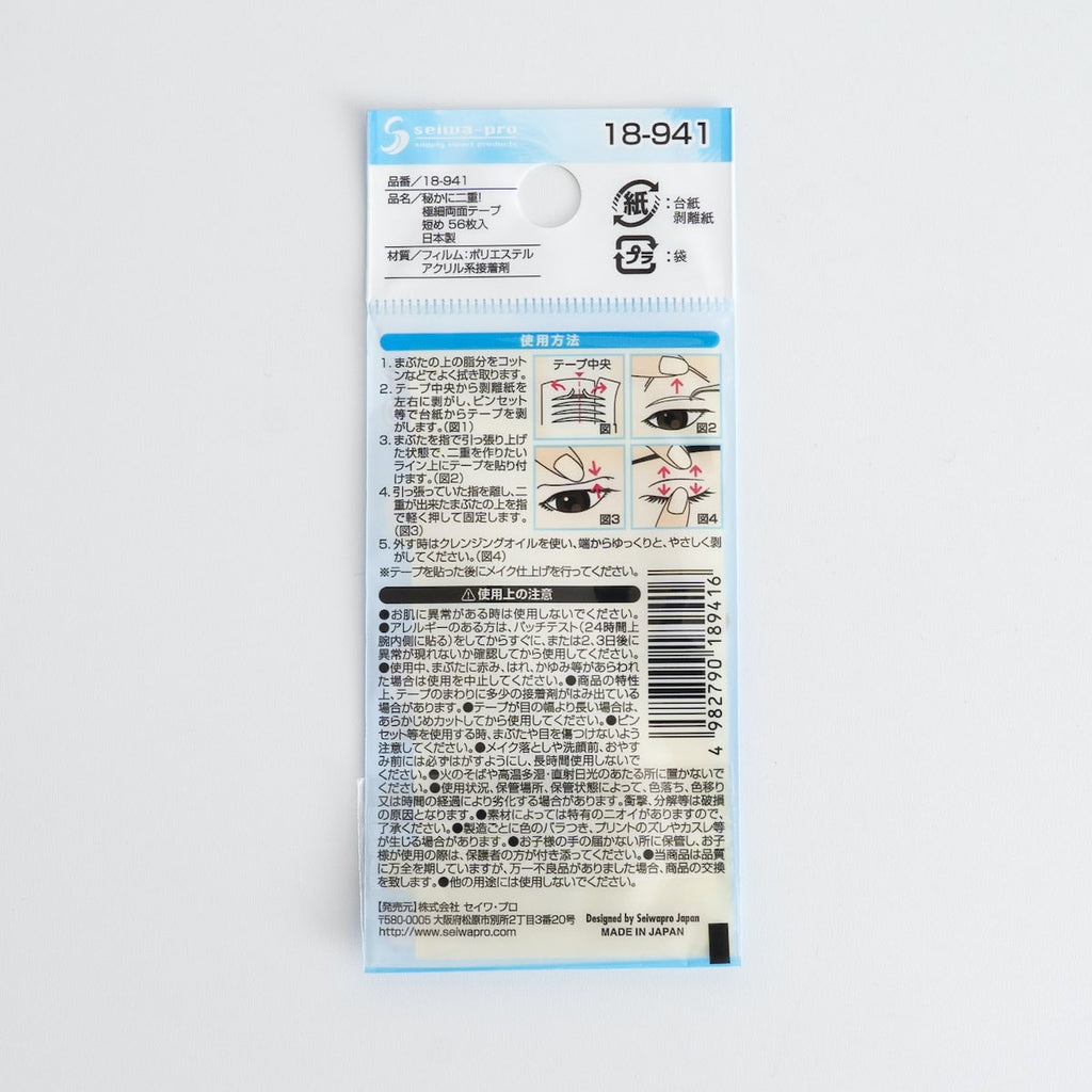 コストパフォーマンスに優れた56枚入りで、デイリー使いにもおすすめ。毎日使っても約4週間分と十分な枚数があり、使いながら自分の理想の二重ラインを見つけるのにもぴったりです。同シリーズには「40枚入り」タイプも展開されており、好みに応じて選べるのも嬉しいポイント。