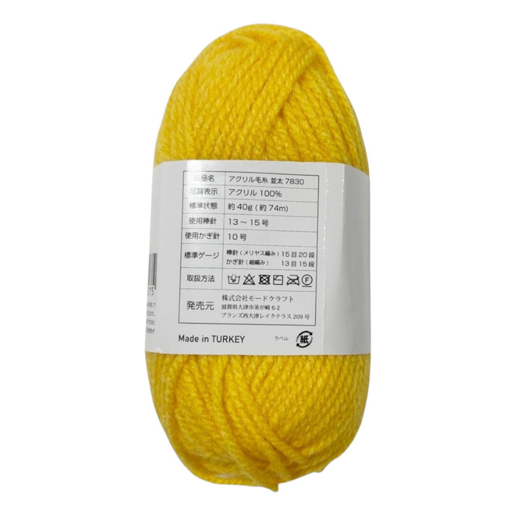 使用棒針13-15号、使用かぎ針10号、標準状態で約40g(約74m)です。