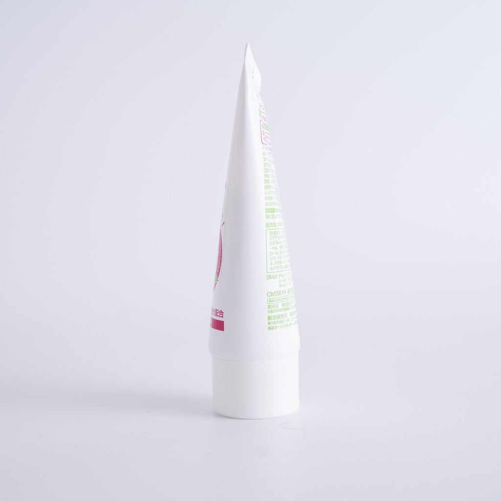 パッケージは130×55×55mmのコンパクトなサイズ感で、ポーチやバッグにすっきり収まります。フタは片手で開閉しやすく、外出先やオフィスでもさっと取り出して使えるのが魅力。チューブタイプで量の調整がしやすく、最後まで無駄なく使える仕様です。