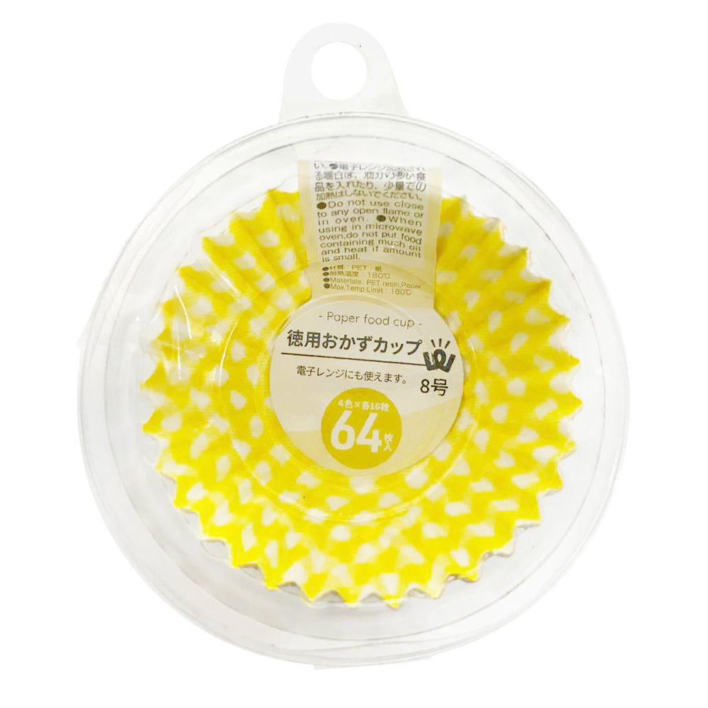 チェック柄がかわいい徳用おかずカップ、8号サイズ、64枚入りです。