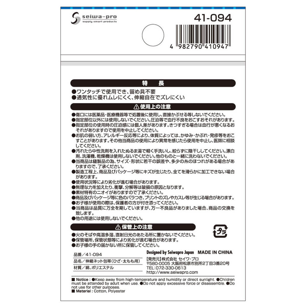 こちらの商品は、伸縮性のあるひざ・太もも用のネット包帯です。
