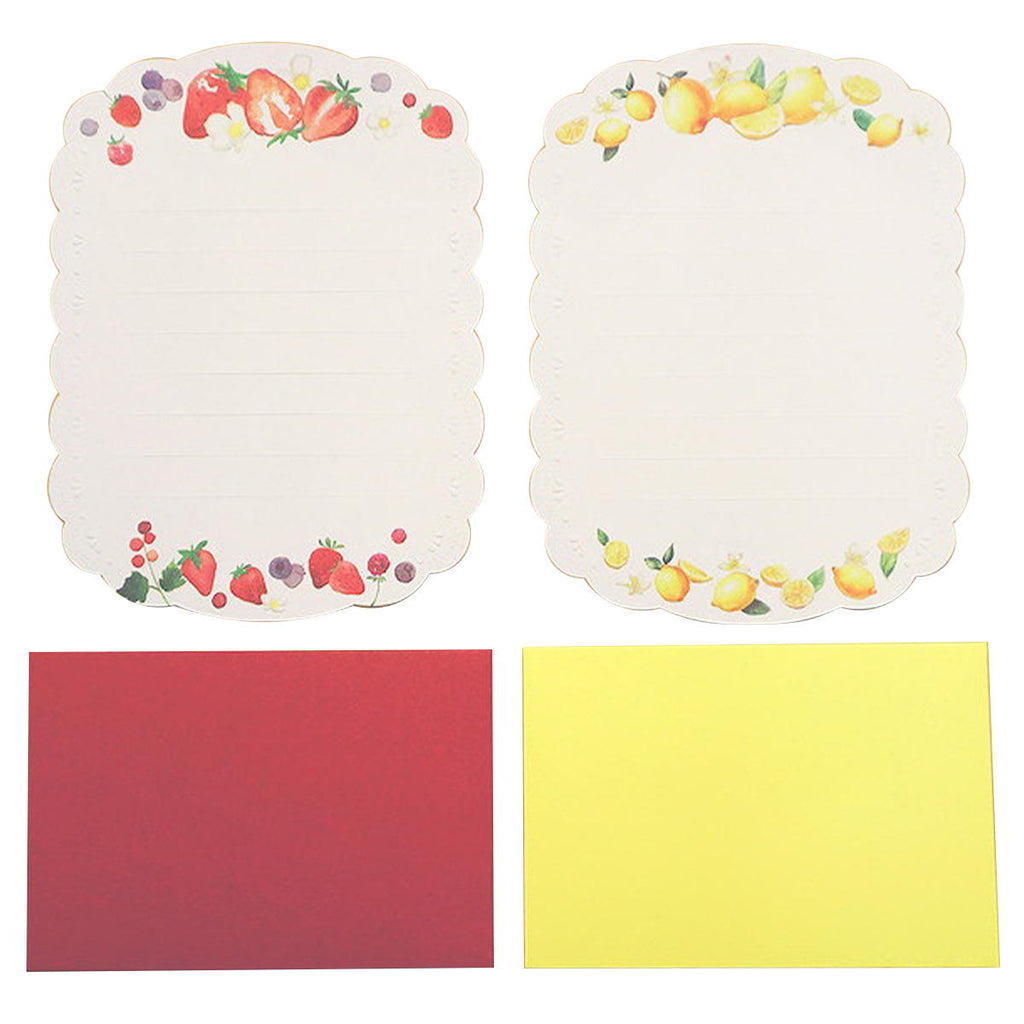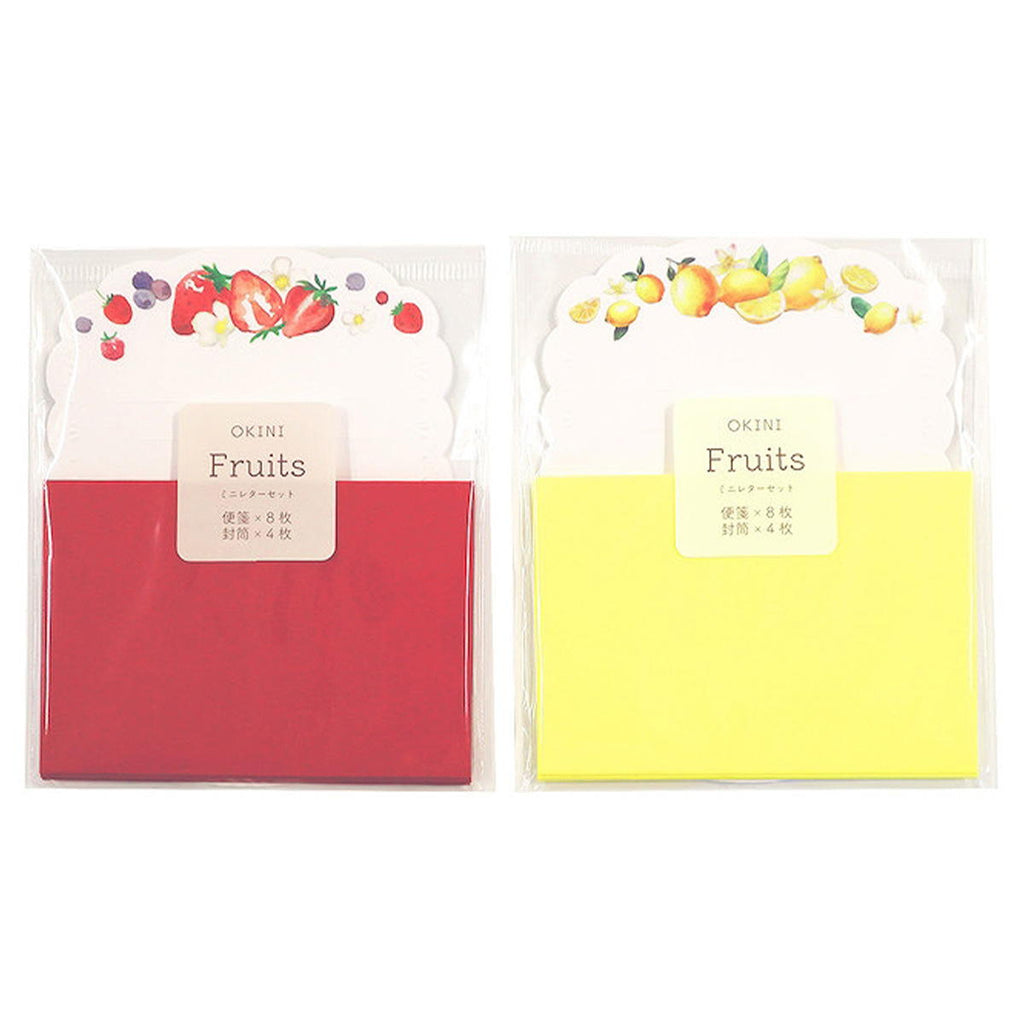 便箋8枚・封筒4枚、フルーツ柄の便箋にエンボス加工が施されたミニレターセット