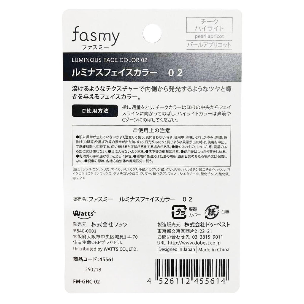 PB.fasmy ルミナスフェイスカラー 02 パールアプリコット 045561