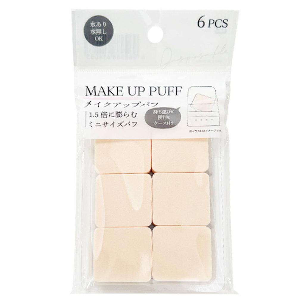 持ち運びに便利な携帯ケース付きミニサイズパフ6Pです。