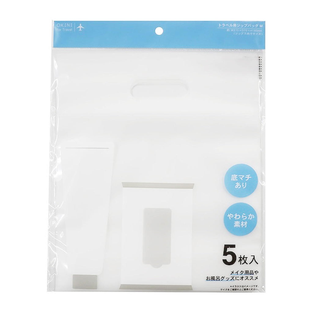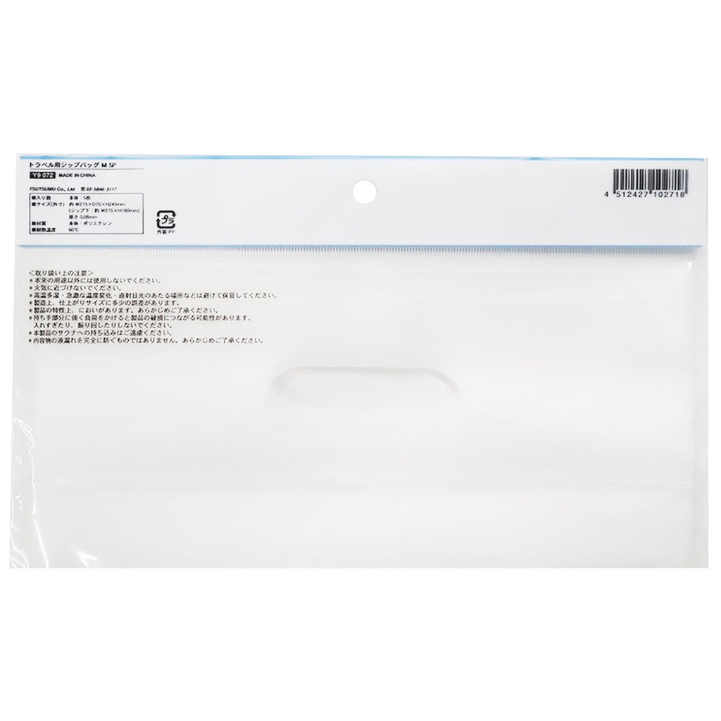 半透明のやわらか素材の持ち手付きジップバッグ