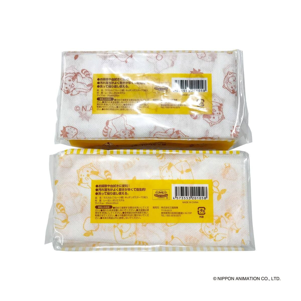 お掃除や台拭きに便利なラスカル(フルーツ柄)のキッチンダスター70枚入です。