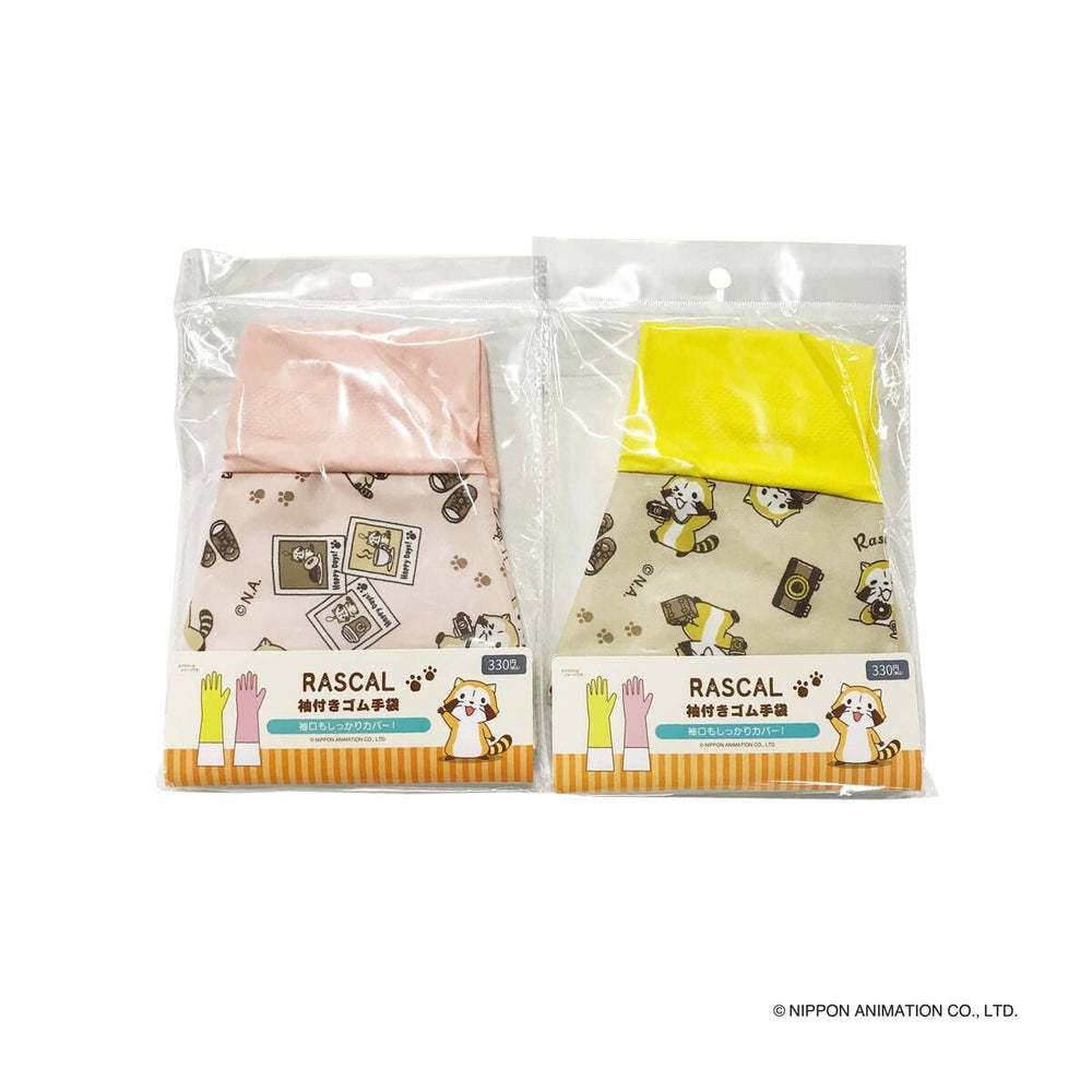全長39cm。袖口もしっかりカバー!ラスカル(カフェ柄)の袖付きゴム手袋です。