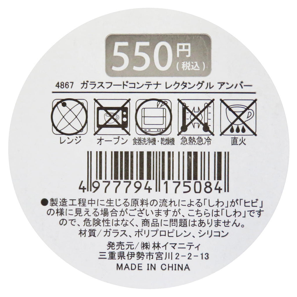 【在庫限り】ガラスフードコンテナ レクタングル アンバー 327507
