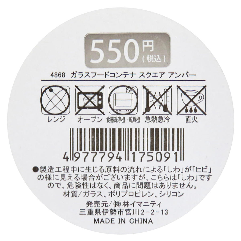 【在庫限り】ガラスフードコンテナ スクエア アンバー 327508