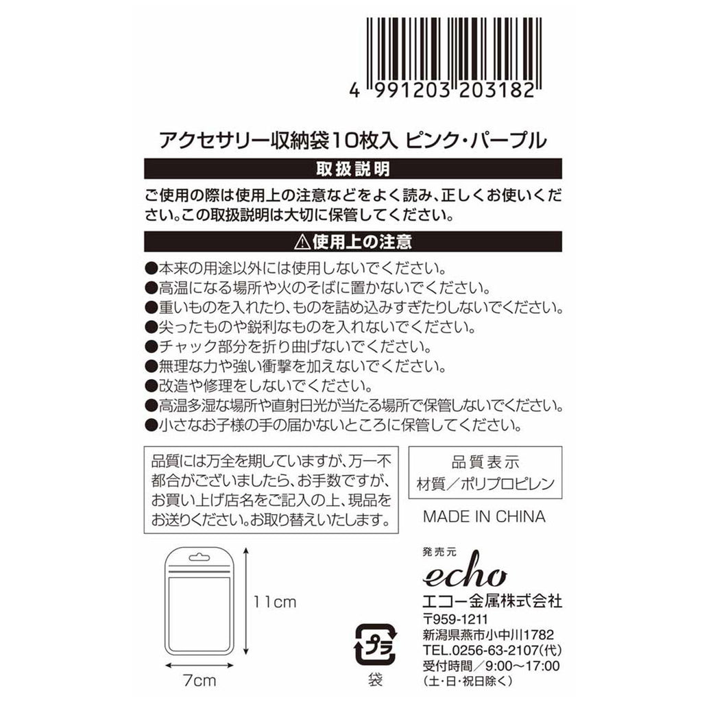 アクセサリー収納袋10枚入ピンク・パープル 366589