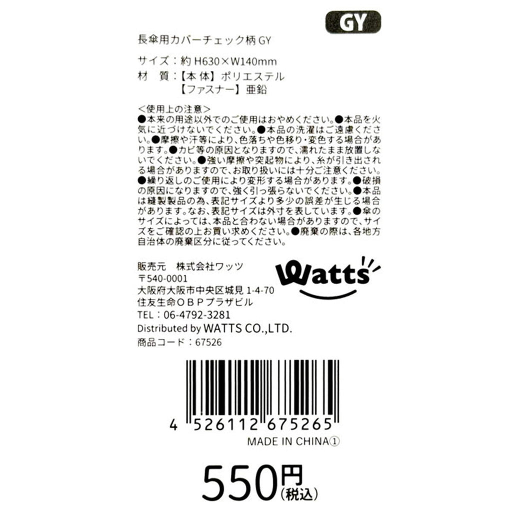 Tokinone PB.長傘用カバーチェック柄 グレー 067526
