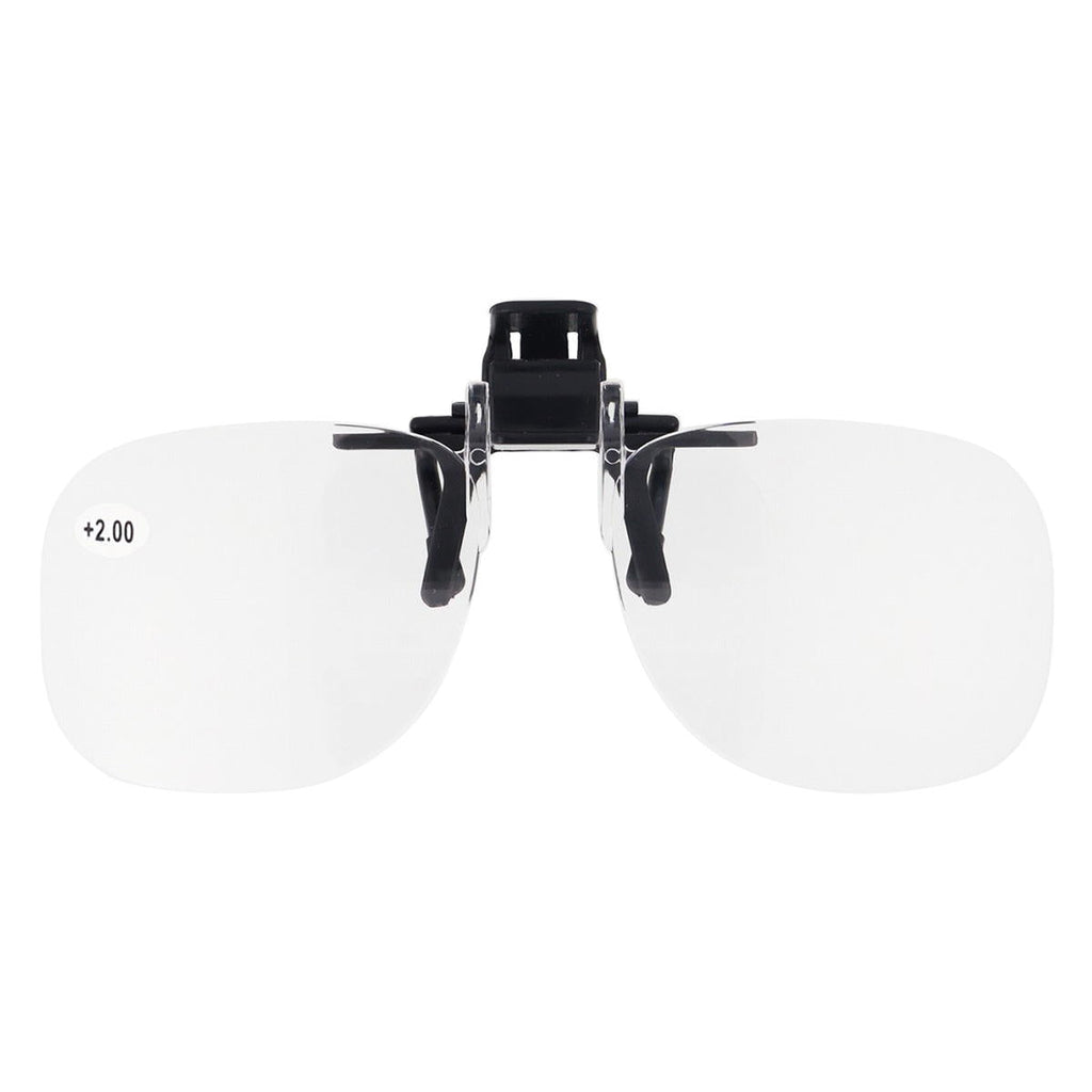 お使いのメガネに挟むだけのクリップアップ老眼鏡です。