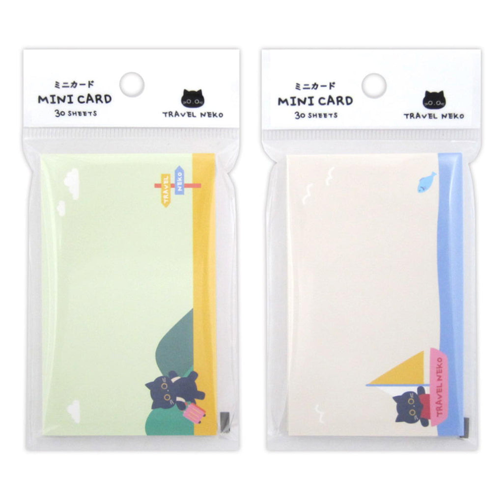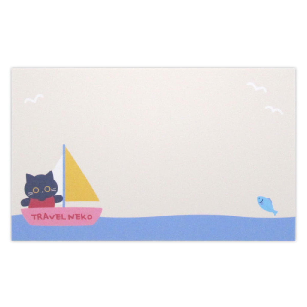 山と海を旅する黒猫をデザインしたミニカードです。