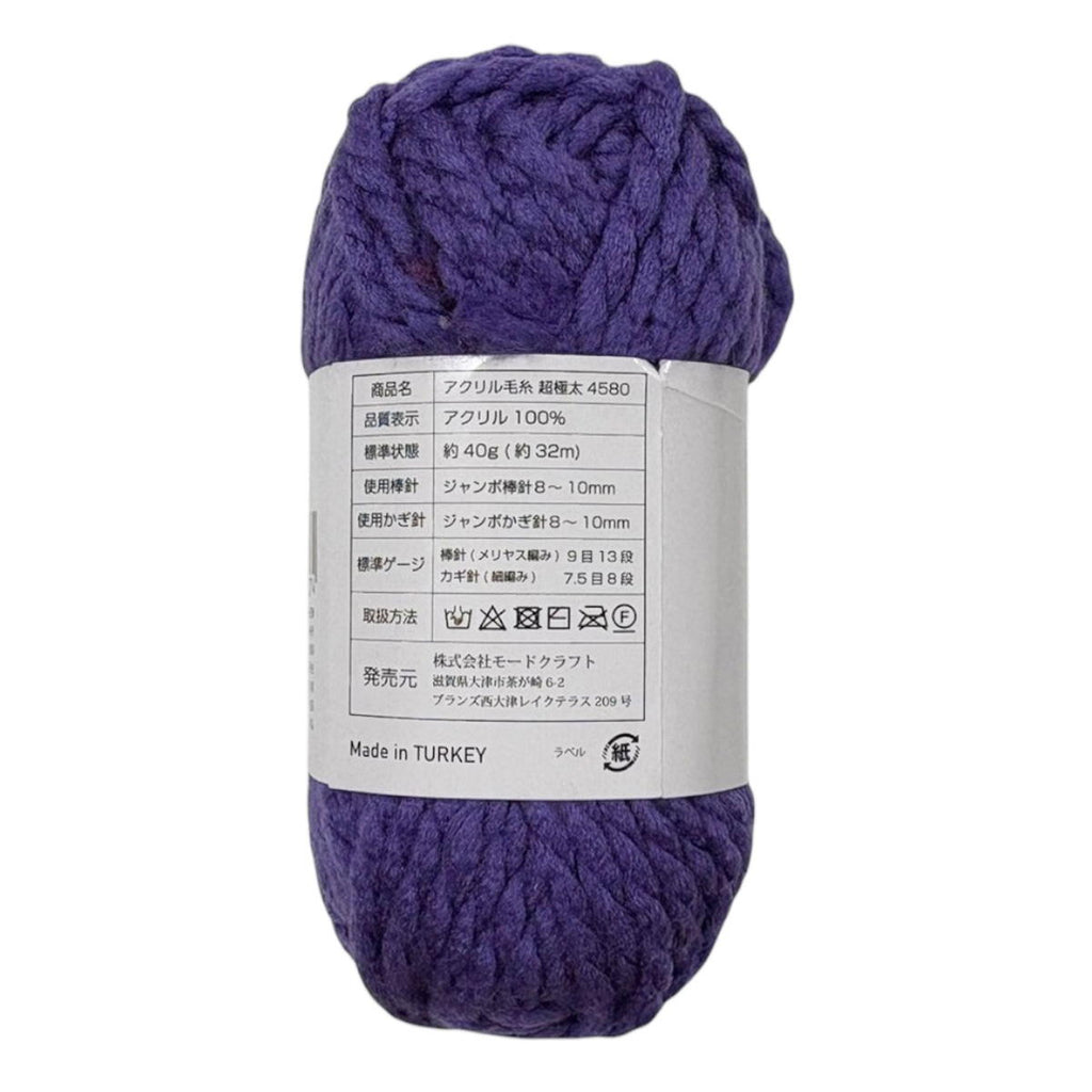 ジャンボ棒針8-10mm、ジャンボかぎ針8-10mm、標準状態で約40g(約32m)です。