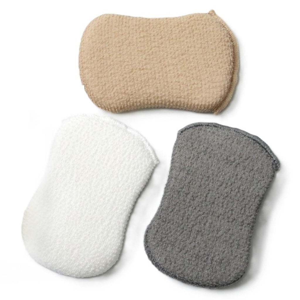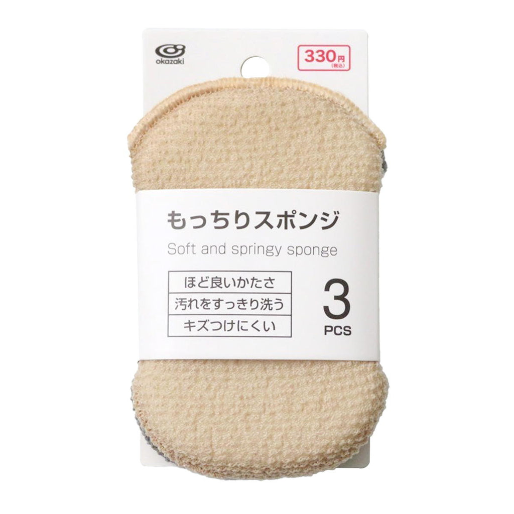 3個入、程よい硬さのスポンジが優しく汚れを落とします。
