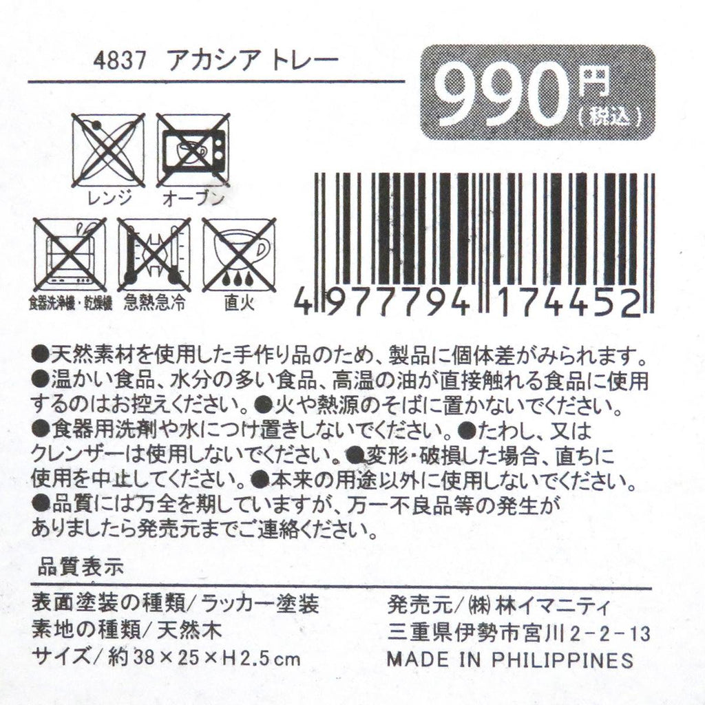 温かみのあるアカシアの木でできた長方形型のトレーです。