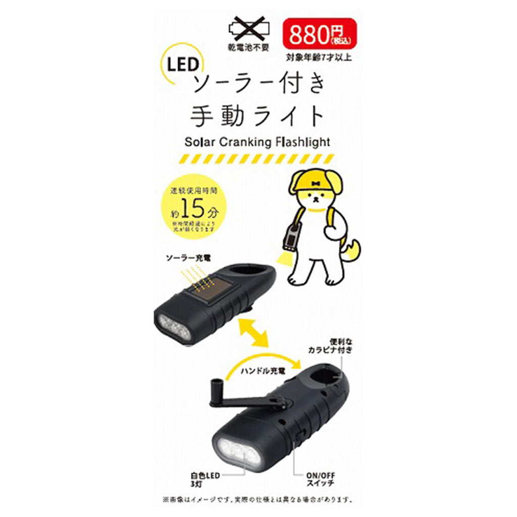 電池不要の手動とソーラーがセットになったライト 発火の恐れがありますので、長期間使用しない場合は必ず電力を使い切ってから保管して下さい。