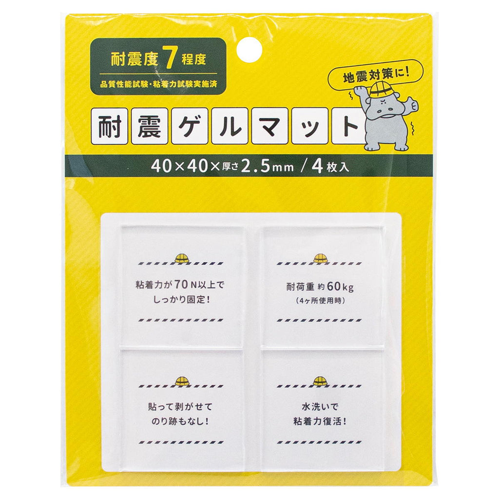 耐熱・耐冷温度:約100℃/-30℃、耐荷重約60kg(4ヶ所使用時)、耐震度7程度貼って剥がせてのり跡も付かない、水洗いで粘着復活の耐震ゲルマットです。