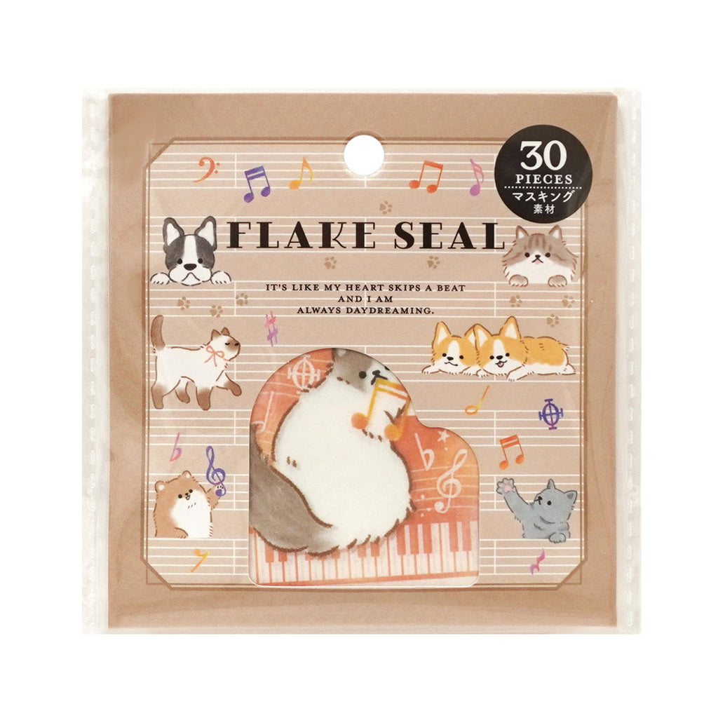 音楽と動物のデザインをしたマステ素材のフレークシールです。
