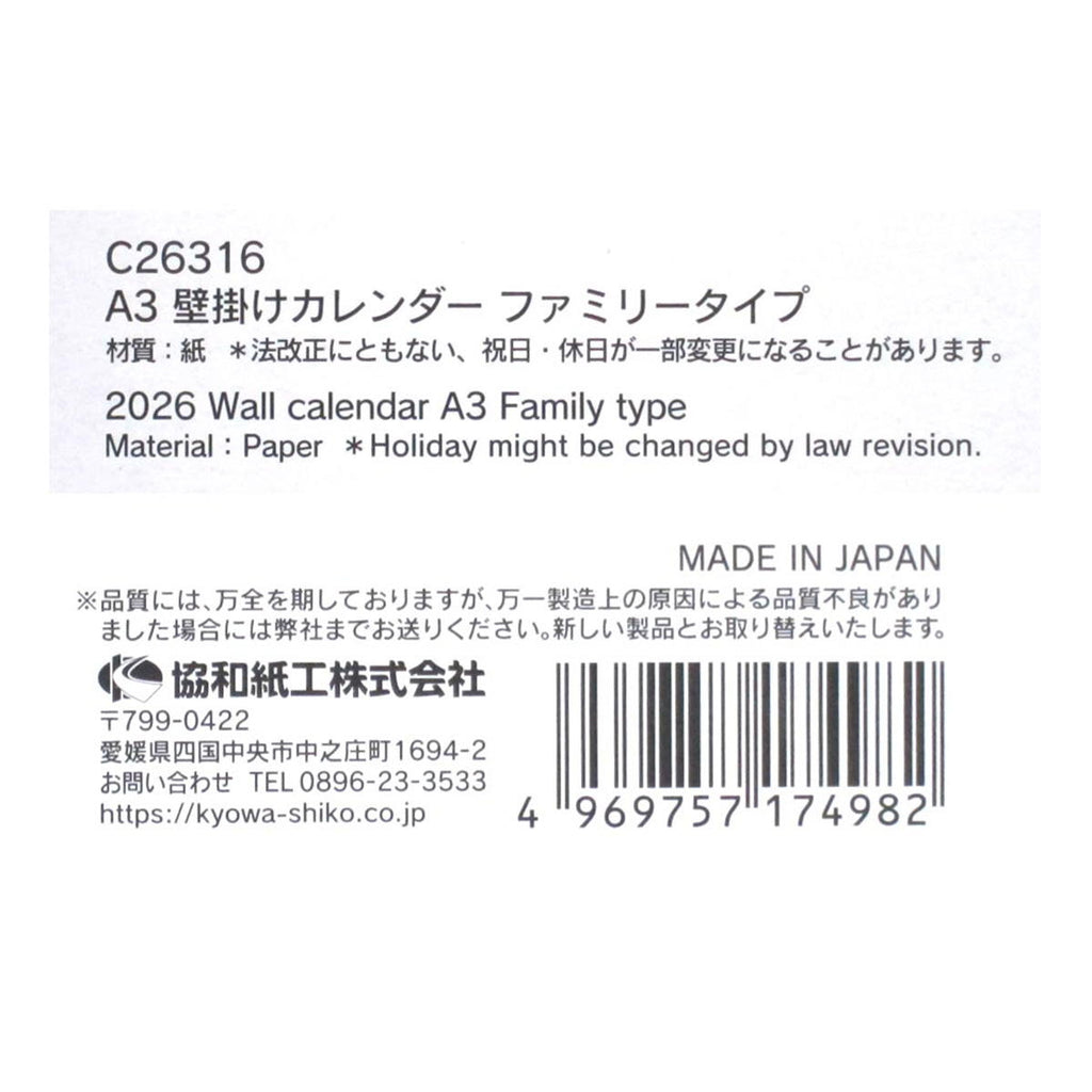 枚数:12枚(1枚に1か月)。