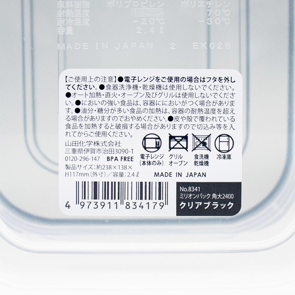 容量:約2.4L、耐熱/耐冷温度:約本体140℃/-20℃、フタ約70℃/-30℃