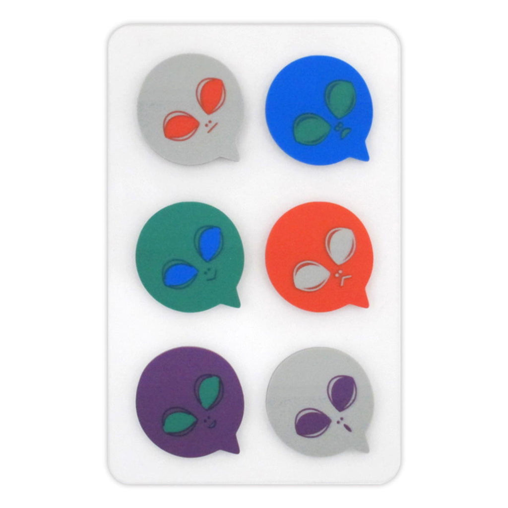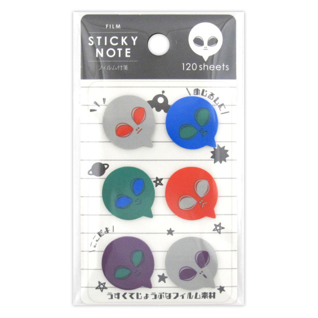 カラフルな宇宙人たちをデザインしたふきだし型のフィルム付箋です。
