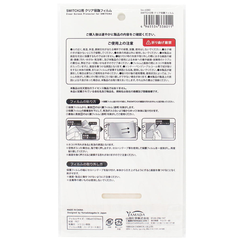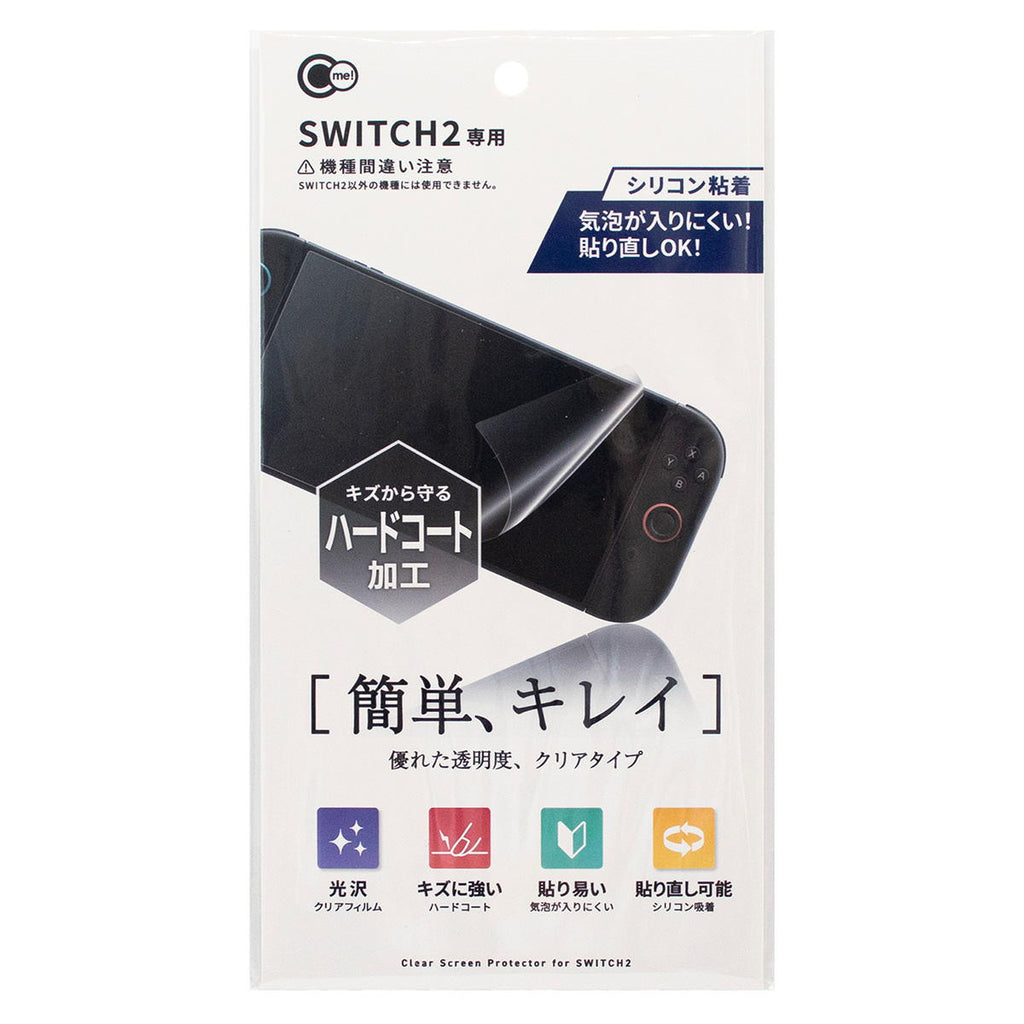 SWITCH2専用のキズに強いハードコート加工が施されたクリアタイプの保護フィルムです。