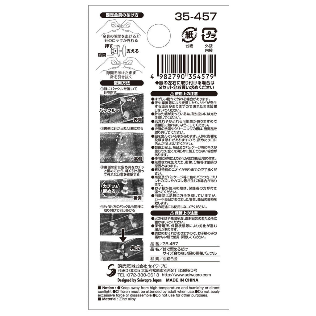 【在庫限り】針で留めるだけ サイズ合わない服の調整バックル 368762