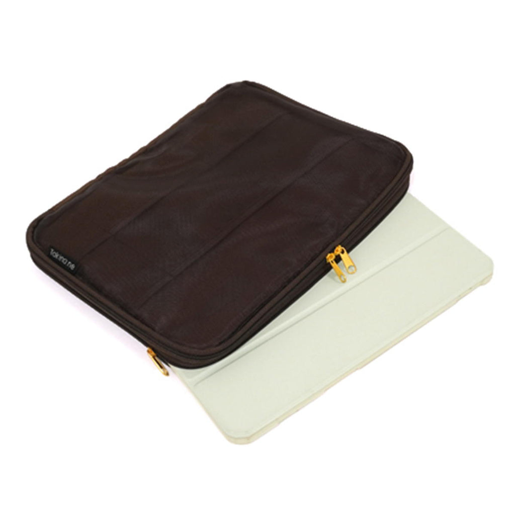 11インチまでのサイズを収納できるブラウン色のタブレットケースです。