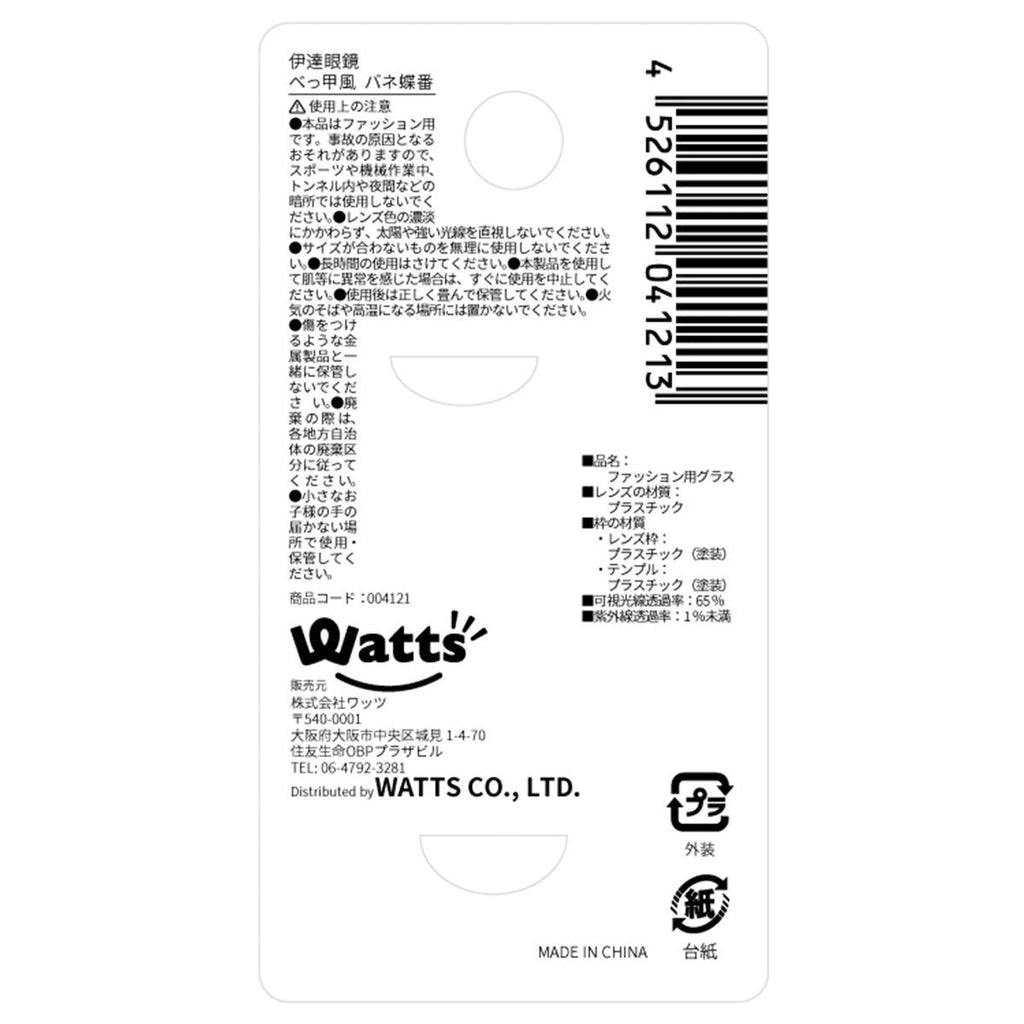 べっ甲風バネ蝶番のファッション性が高い、紫外線99%カット伊達眼鏡です。