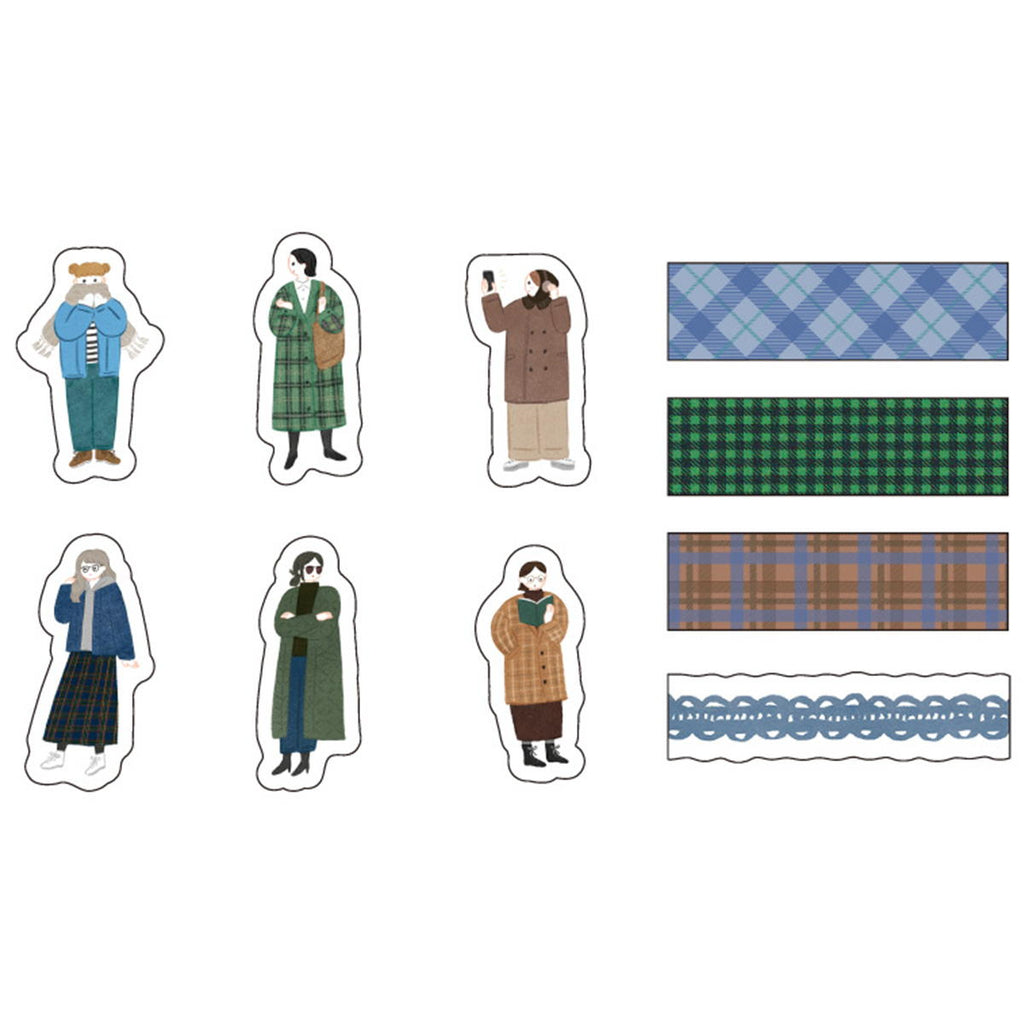 色別のかわいいあったかコーデの女の子と、コラージュにぴったりの柄が詰まったおしゃれなデザイン。