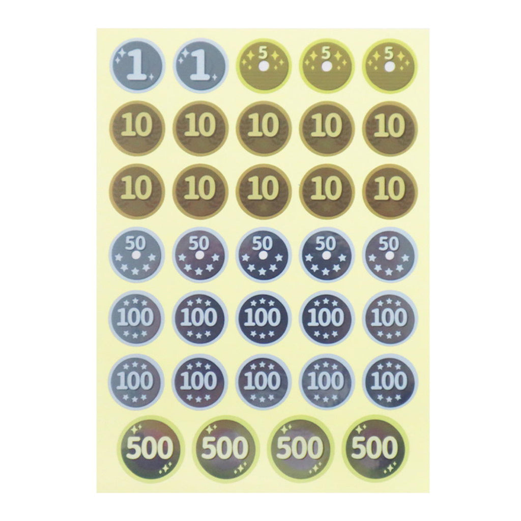 おこづかいの記録や計算の練習にぴったりな、コイン風デザインのポイントシールです。