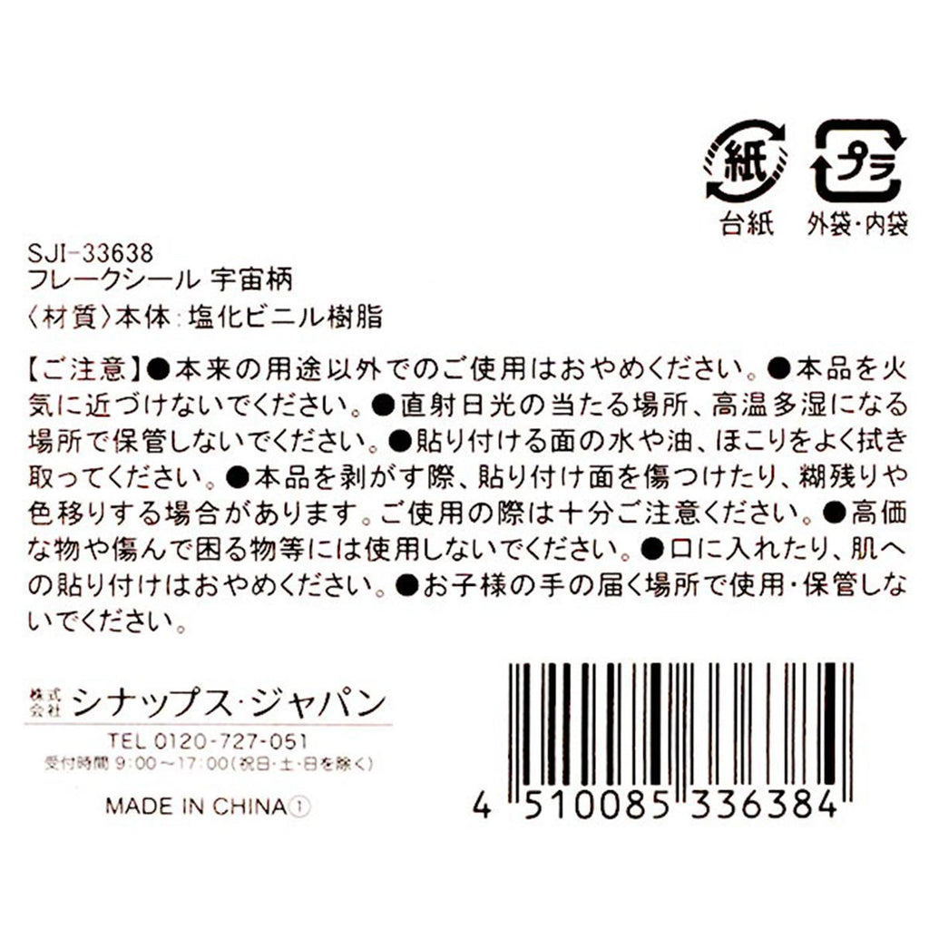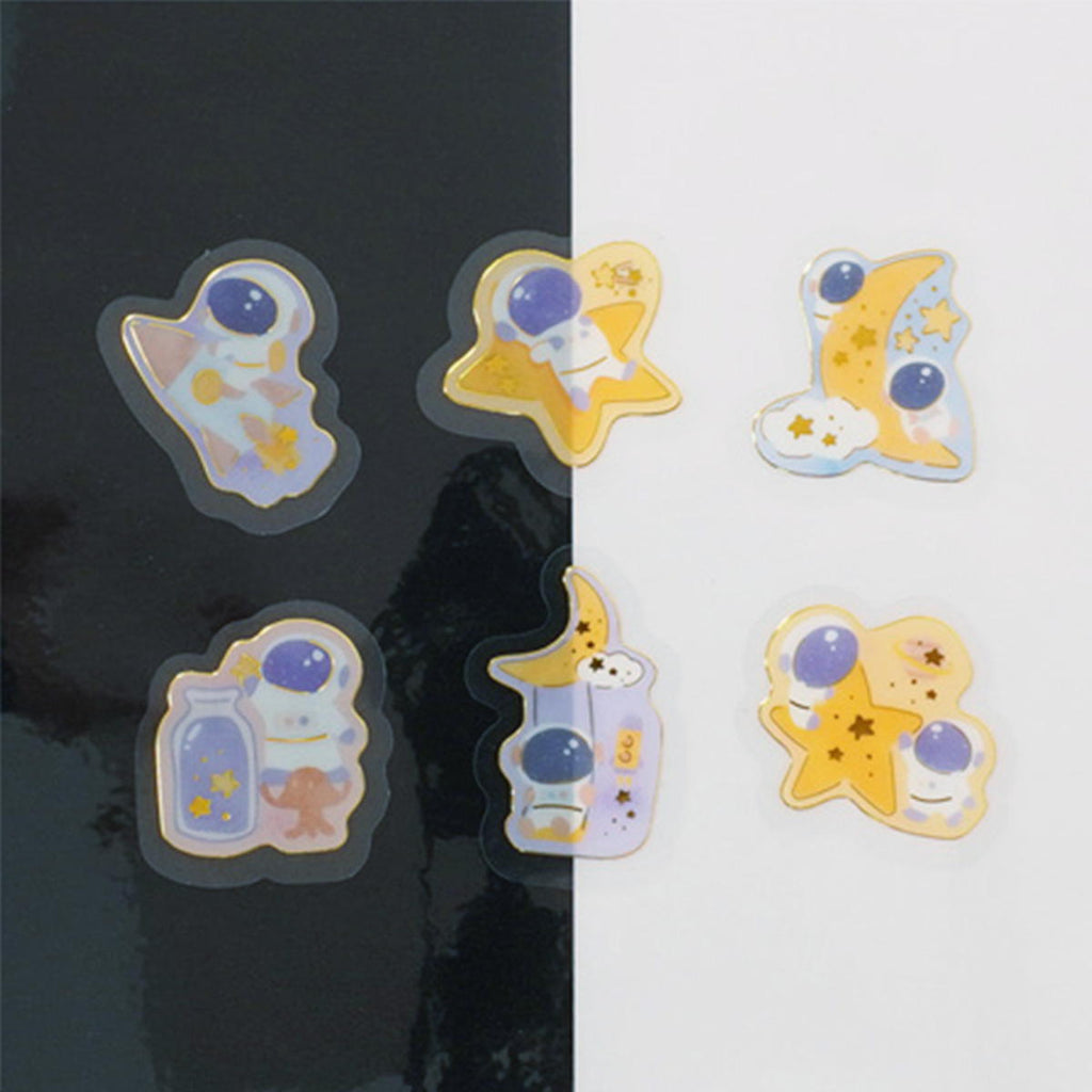 2頭身のかわいい宇宙飛行士をデザインした樹脂素材のフレークシールです。