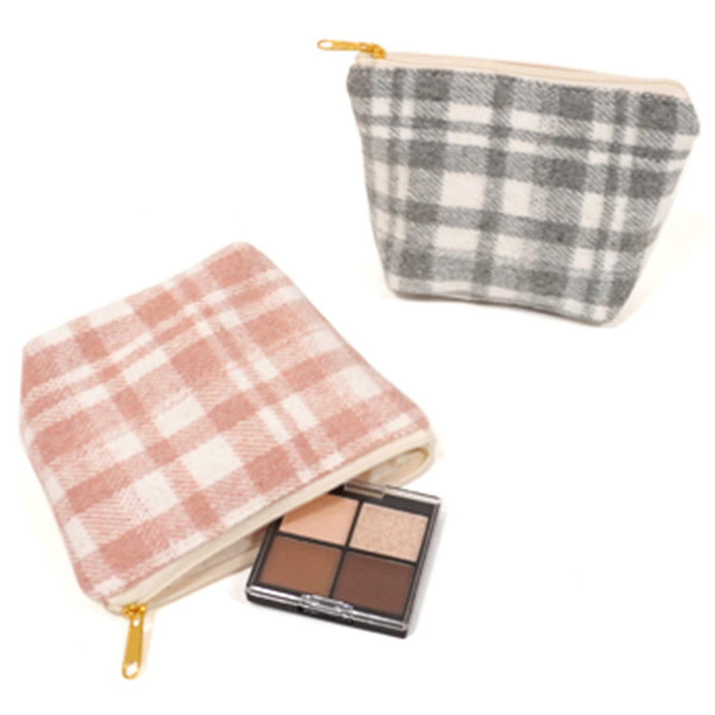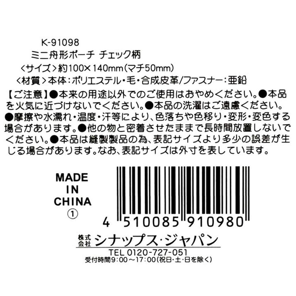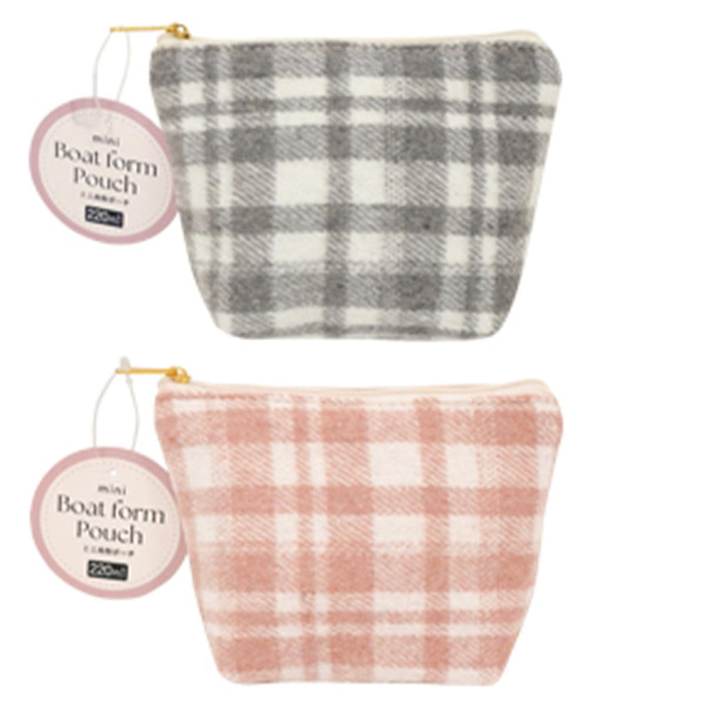 あたたかみのあるチェック柄生地と合皮の組み合わせが大人可愛いミニ舟形ポーチです。