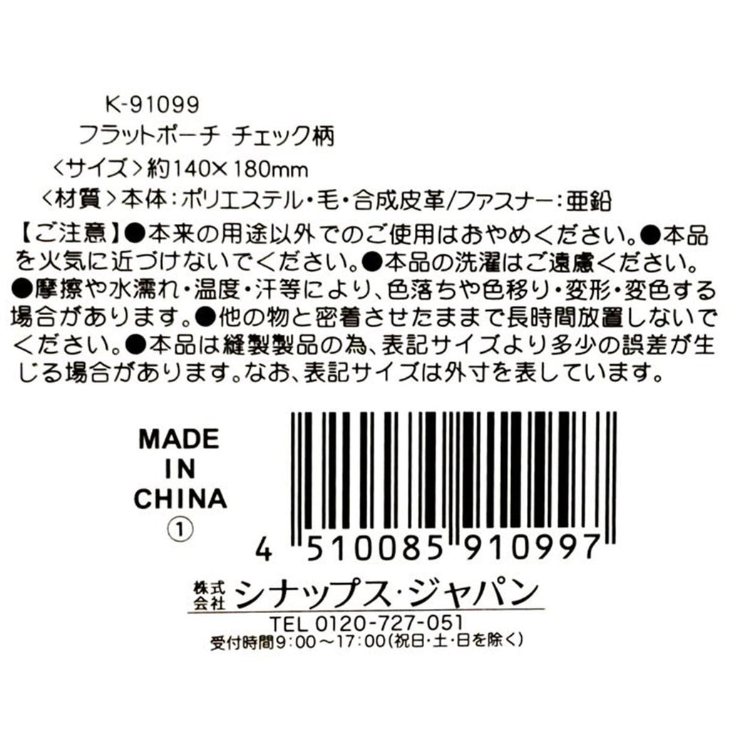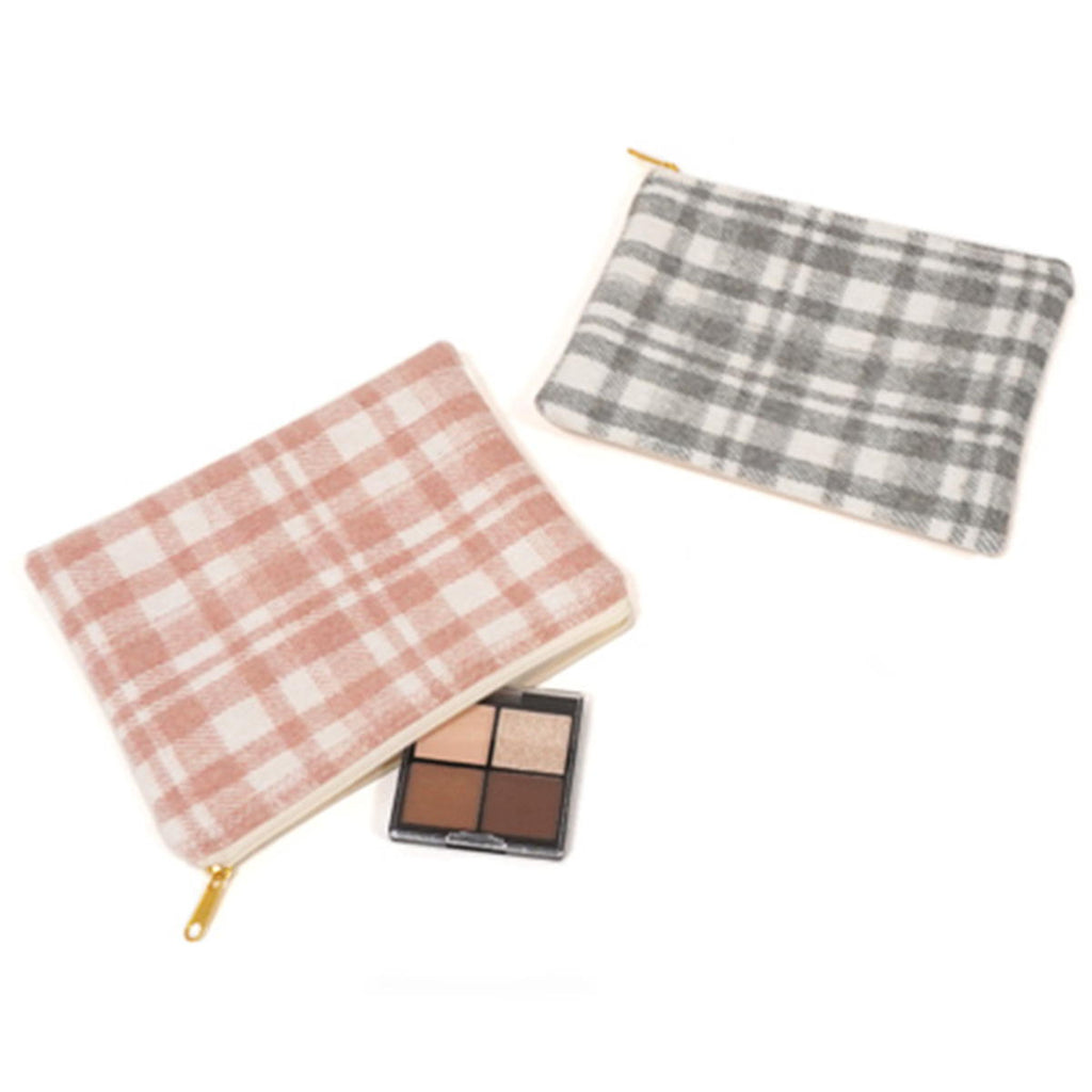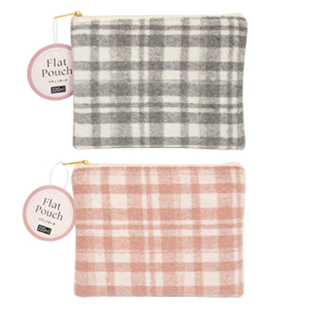 あたたかみのあるチェック柄生地と合皮の組み合わせが大人可愛いフラットポーチです。