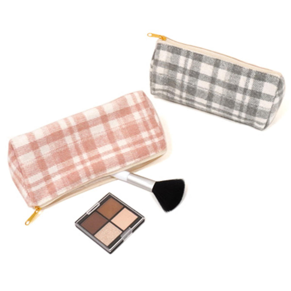 あたたかみのあるチェック柄生地と合皮の組み合わせが大人可愛い横長のトライアングルポーチです。