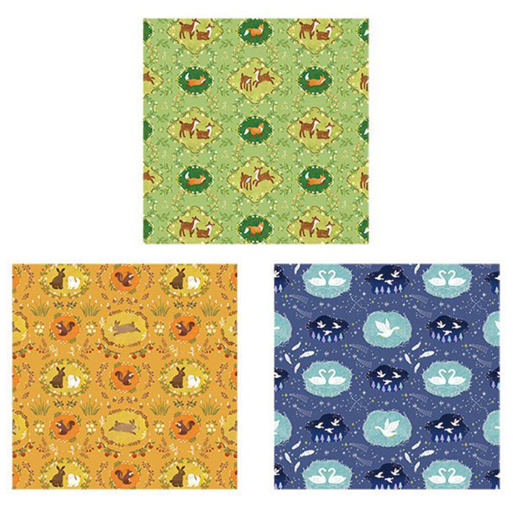 動物たちが森や季節感のある風景におしゃれに溶け込んだデザインです。