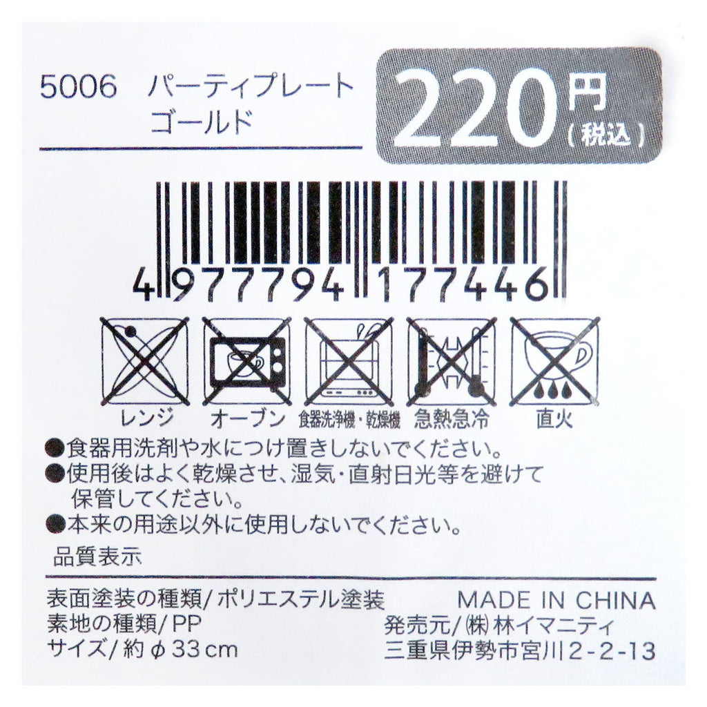 パーティプレート ゴールド 371350