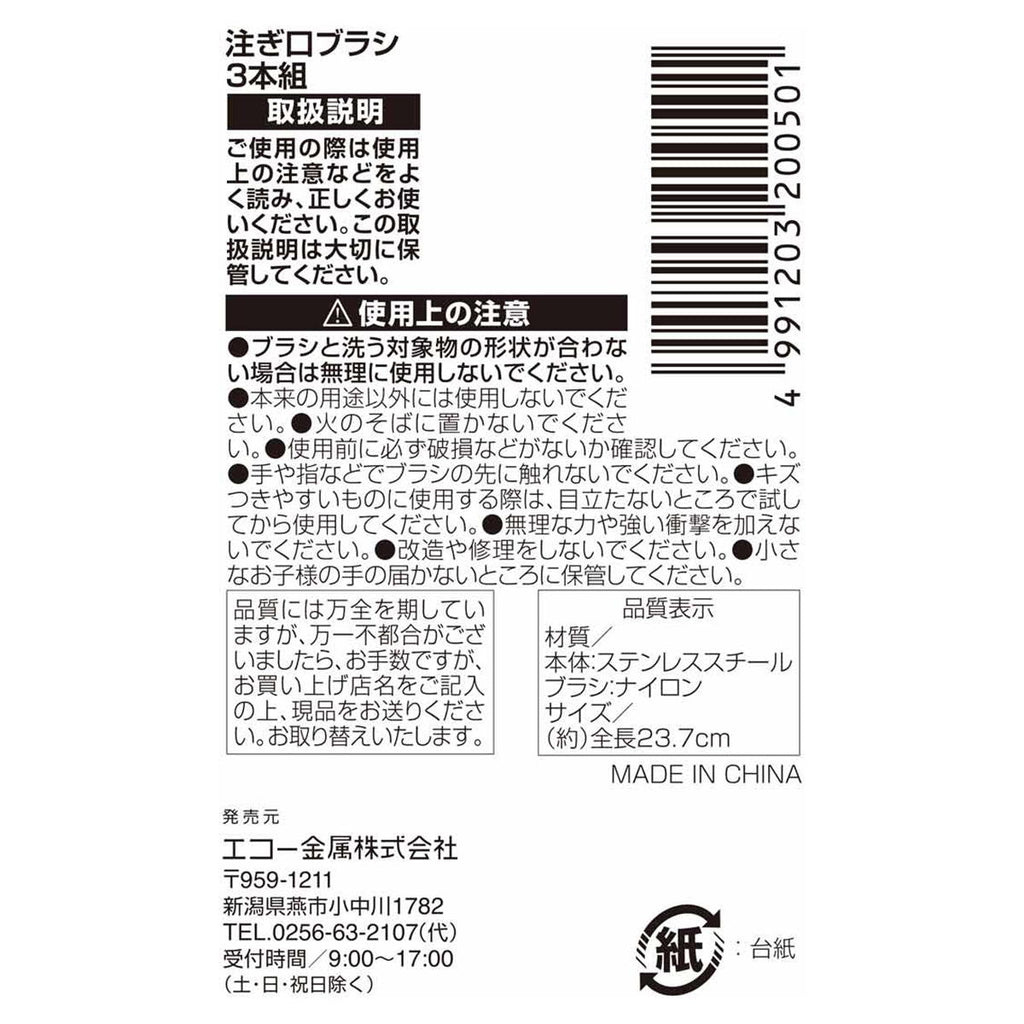 用途に合わせた太・中・細ブラシ3種類がセットになった注ぎ口ブラシです。