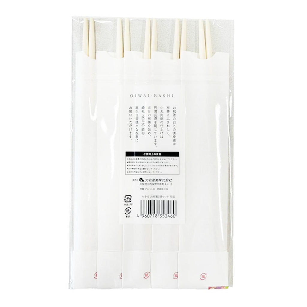 お祝い箸の白さの清浄感は祝事にふさわしく、中丸両細の仕上げは円満長寿を現しています。