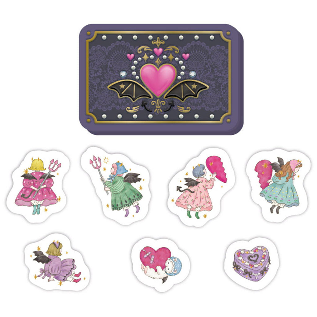 ゴールド箔押しがポイントのかわいらしいあくまの女の子のシールです。