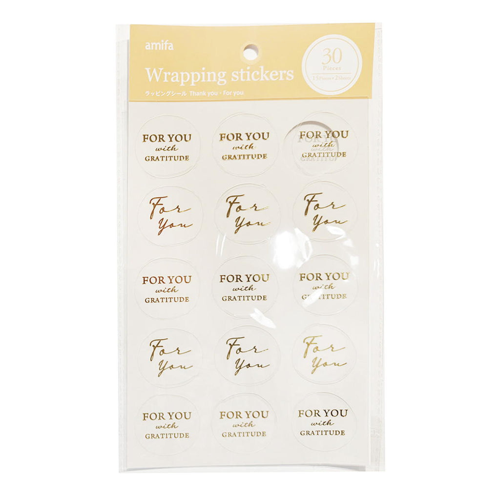 透明のシールにキラキラした箔押しの文字が高級感があるデザインです。