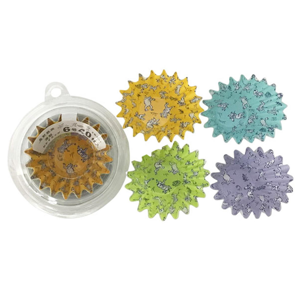 カラフルな鳥獣戯画柄の深型おかずカップです。