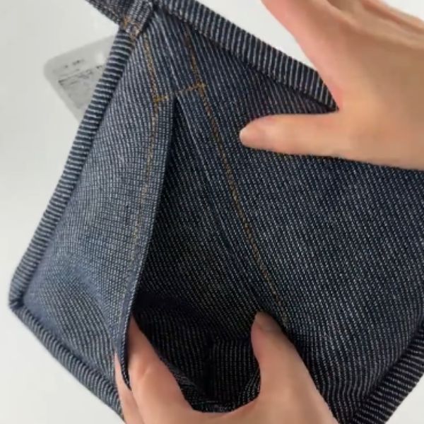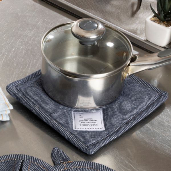 敷いてもつかんでも使える!デニム風デザインの2WAY鍋敷き